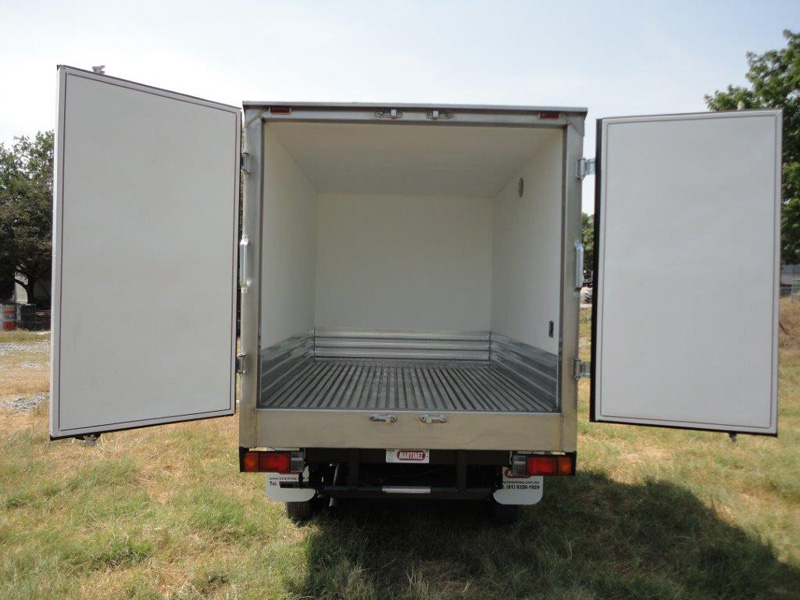 - Puertas: Dos traseras abatibles de aluminio con bisagras y cerrojo exterior tipo tráiler con gasket perimetral de doble sellado